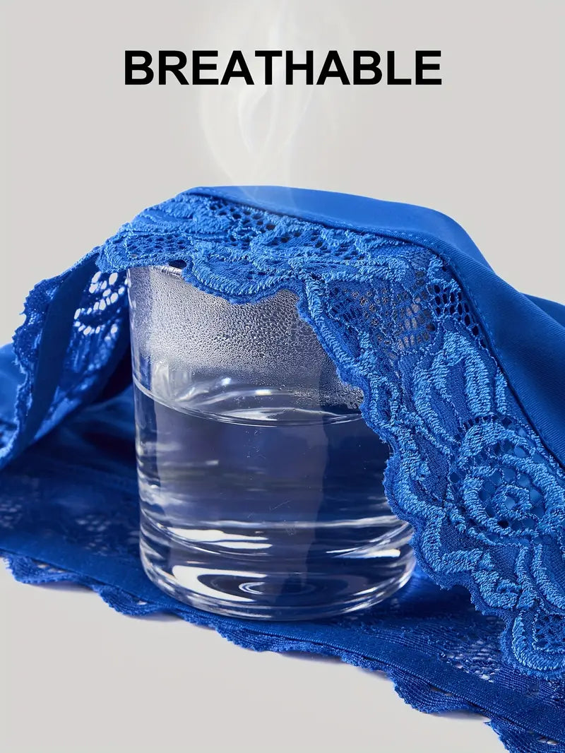 5pcs Women'S Elegant Lace Spliced Triangle Panties - Breathable Mid-Rise Bikini Briefs, Romantic Holiday Fashion, Solid Color, Comfortable & Stylish, Everyday Underwear | Elegant Lace Detail | Smooth Texture Fabric