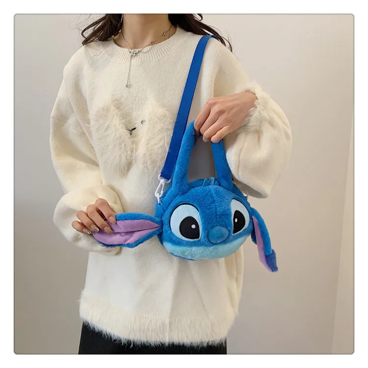Disney Stitch Soft Plush Crossbody Bag Korean Cute Style Adjustable Strap Kawaii Anime Shoulder Purse Medium Size Gift for Women